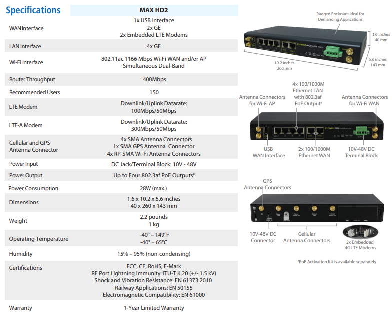รุ่น | PEP-MAX-HD2-LTE-UE-T |