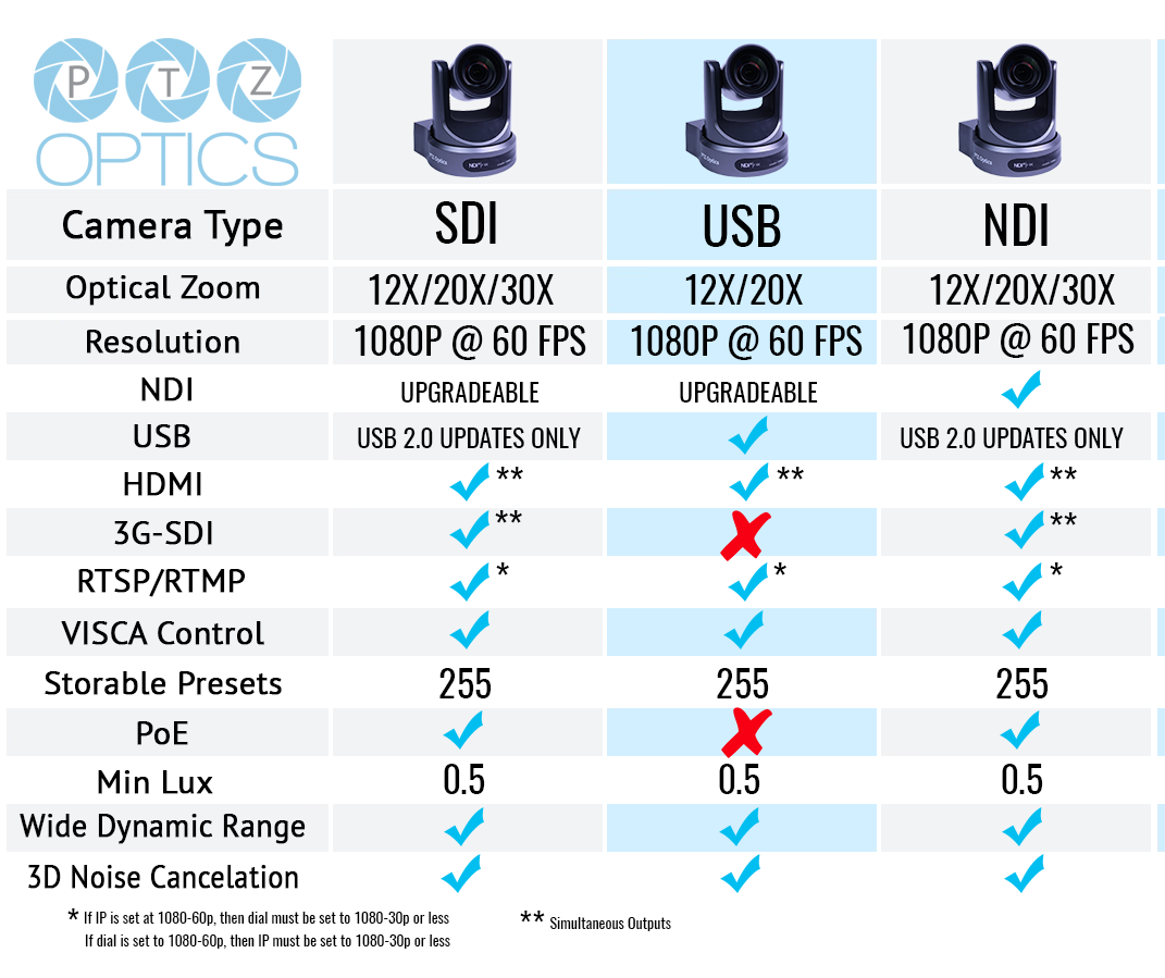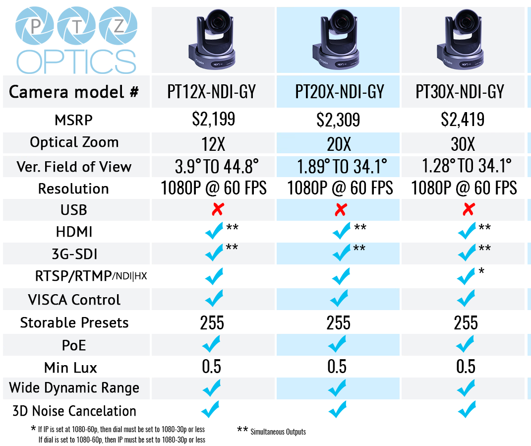 The 12X PTZOptics models offer a wide field of view with the ability to zoom into narrow a 6.9 degrees.